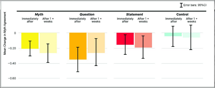 The researchers measured changes in agreement with myths and intention to vaccinate immediately after the intervention and at least 1 week later.