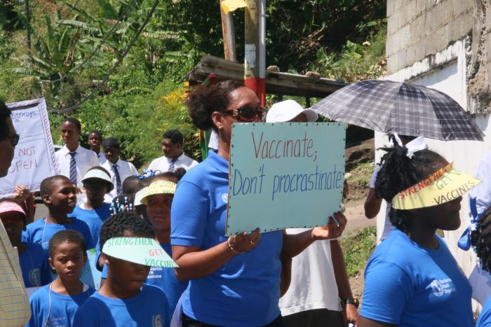 The review found that the English- and Dutch-speaking Caribbean has been instrumental in ensuring the expansion of vaccination benefits population-wide (e.g., actively vaccinating adult risk groups in preparation for and during mass gatherings such as the Cricket World Cup 2007), as well as legislation and awareness (e.g., a subregion-led resolution to the World Health Assembly in 2012 led to World Immunization Week). In fact, health promotion and education is an ongoing part of the immunisation programme and is used to promote the benefits of vaccination, encourage mothers to vaccinate their children at the optimum age, and disseminate information on vaccines. In addition to clinic-based follow-up and recall mechanisms for dropouts from the immunisation programme, vaccines are administered through home and school visits for older children and children who fail to respond to recall messages or at outreach activities such as health fairs.