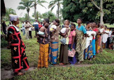Global Immunization News (GIN), October 2016 [PDF] and save the Children website, November 1 2016, and email from Kirsten Mathieson to The Communication Initiative on March 9 2017. Image caption/credit: "Mothers wait in line for their children to be vaccinated at a health centre in the Democratic Republic of Congo." Ivy Lahon/Save the Children