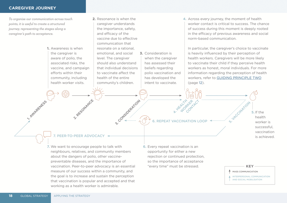 The Journal of Infectious Diseases, Volume 216, Supplement 1: S331-S336. DOI: https://doi.org/10.1093/infdis/jiw546. Image caption/credit: "The caregiver journey to OPV acceptance. The figure originally appeared in the Polio Communication Global Guide."
