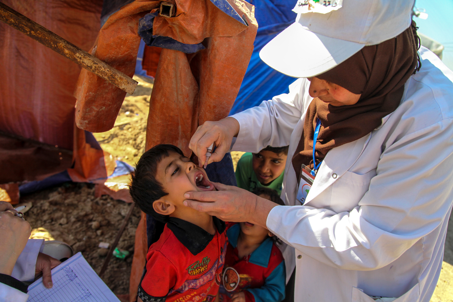 Email from Alyssa Sharkey to The Communication Initiative on May 2 2019 and ERG website, May 3 2019. Image caption/credit: A child receives a dose of oral polio vaccine from a health worker in Baghdad's Al-Takya Al-Kasnazaniya Camp for displaced Iraqi families. UNICEF/UN017005/Khuzaie