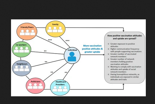 Thus, this review highlights the key role that social networks play in shaping attitudes and vaccination uptake. "Since all people are connected to other people, the effects of an intervention which is delivered to an individual might be indirectly diffused to their social network....Clinicians and policymakers could consider network structure of for example communities and general practice patients, in order to result in higher diffusion of interventions' effect....In addition, clinicians and policymakers are recommended to include social network members in interventions or provide educational family-based programs on vaccinations."