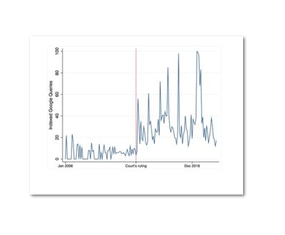 The court's decision to grant compensation to the family after recognising that the MMR vaccine caused their child's autism was initially covered by the most-read national media outlets (e.g., La Repubblica and Il Corriere della Sera). People's concerns about vaccine side effects were then proliferated on the internet. Figure 1 in the paper shows that the number of Google searches for "vaccines and autism" increased drastically after March 2012 and remained quite stable afterwards. Compared with pre-2012, the volume of searches increased by 600%.
